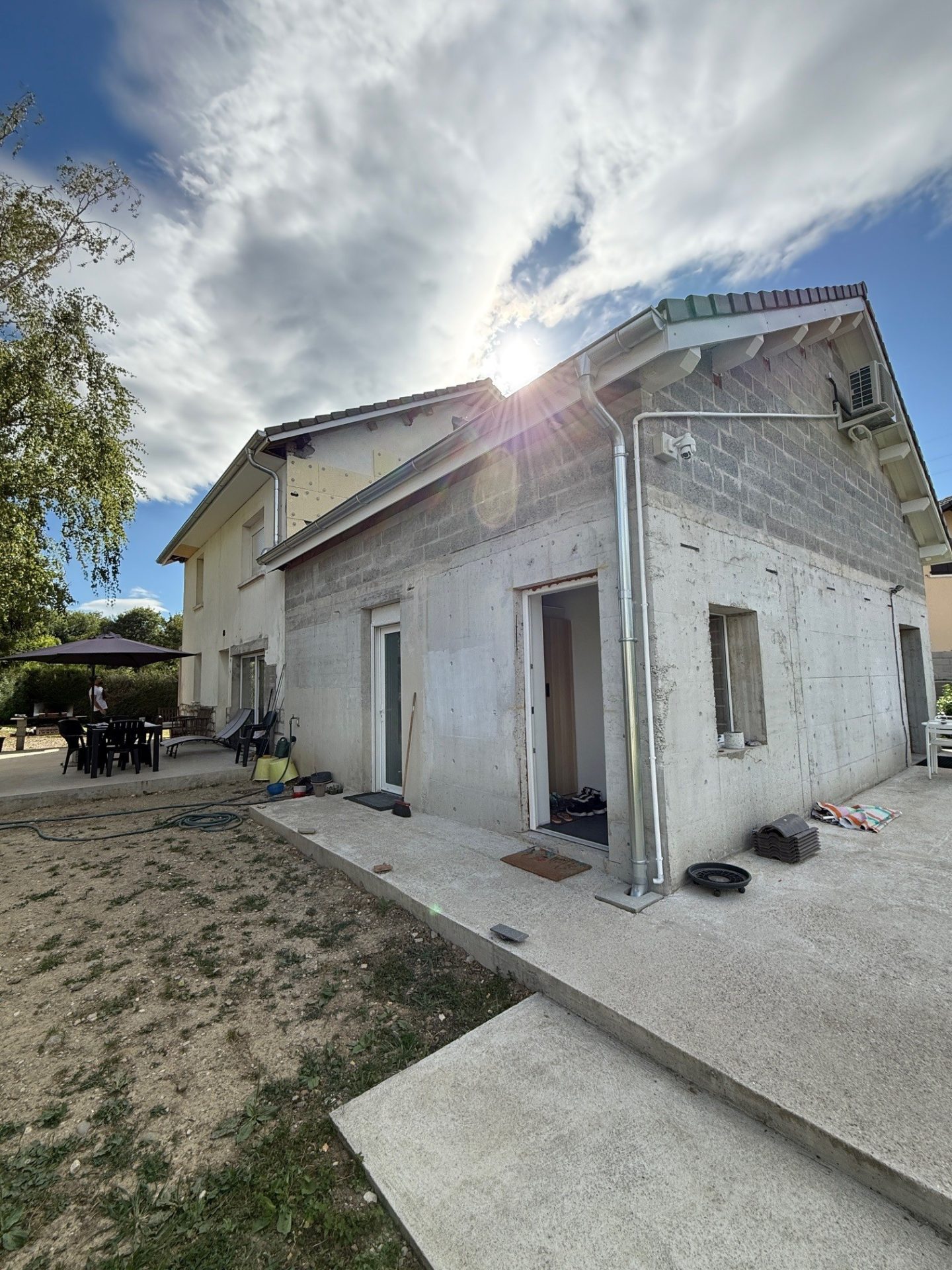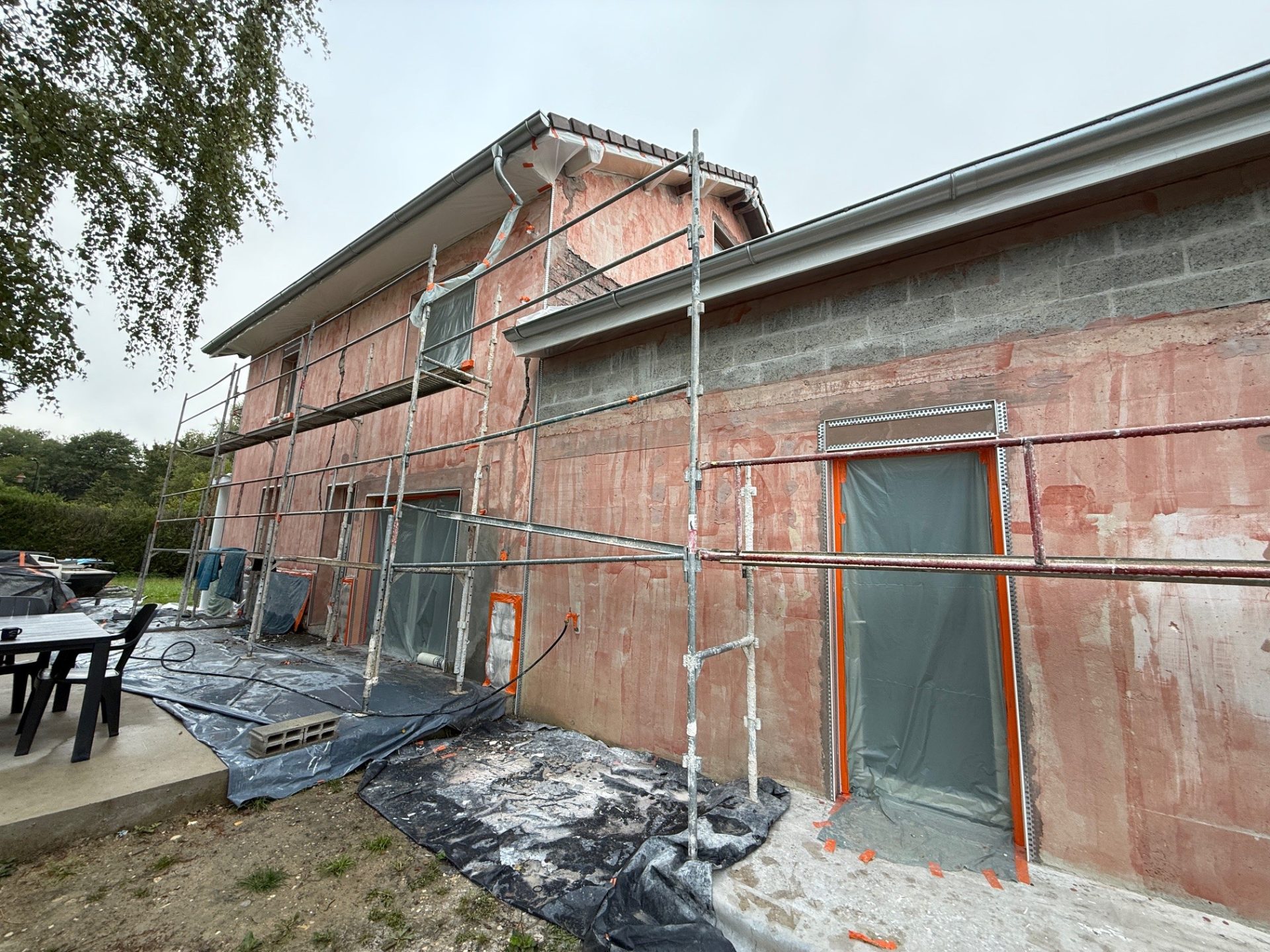 Dans le cadre de ce chantier de ravalement de façade à Éloise (01200), nous sommes intervenus sur une maison nécessitant une rénovation respectueuse des matériaux traditionnels et adaptée aux caractéristiques du bâti existant.